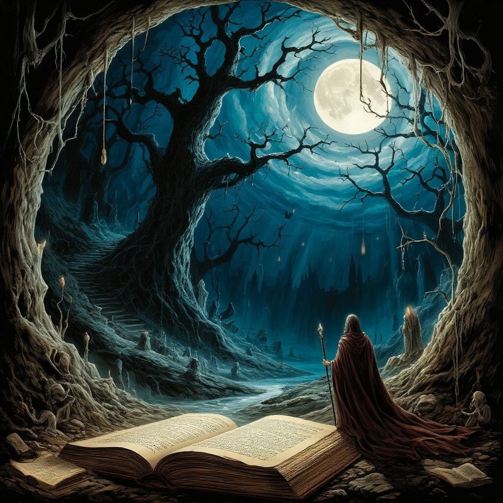 Глава 2. Путь сквозь тьму Когда Лира произнесла слова, которые ей прошептал обсидиановый незнакомец, всё вокруг закружилось в вихре света и тени. Она почувствовала, как её тело пронзает тысячи игл холода, а затем — невесомость. Мир растворился, оставив после себя лишь пустоту. Очнувшись, Лира обнаружила себя лежащей на твёрдой поверхности. Вокруг была тьма, но не такая, как в пещере — эта тьма была живой и давящей, словно она имела собственный пульс и дыхание. Фонарь был потерян, но свет, исходящий от стен, позволял разглядеть очертания окружающего пространства. Лира поднялась на ноги и огляделась. Она стояла в коридоре, выложенном чёрными камнями, которые мерцали в темноте, словно глаза хищников. Воздух был тяжёлым и влажным, пахло землёй и чем-то ещё, чему Лира не могла найти названия. — Где я? — прошептала она, но эхо её голоса утонуло в толще камней. Внезапно впереди мелькнул свет. Лира двинулась навстречу ему, осторожно ступая по неровному полу. Каждый шаг давался с трудом, будто