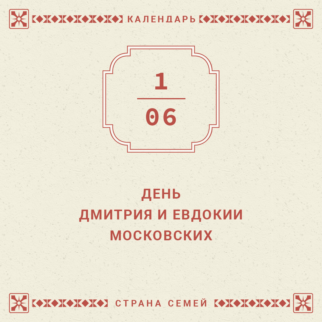 Святые благоверные Дмитрий и Евдокия Московские — это абсолютный пример семейности в отечественной истории. Единобрачие, благословлённое Богом двенадцатью детьми, девять из которых перешло нынешний рубеж совершеннолетия, а второй сын стал наследником своего отца — Великим князем Василием I Дмитриевичем. Овдовев в 1389 году, Евдокия осталась до конца своих дней верна своему супругу и приняла иночество с именем Ефросинии. Воистину, библейская похвала! В нашей стране 1 июня стало днём памяти великих исторических личностей, высоким примером своей семейной жизни снискавших по любви и уважению многих людей право считаться духовными покровителями каждого российского семейства, всех семьянинов в нашем Отечестве. Именно 1 июня многие люди обращают свою молитву к небесным защитникам о благоденствии, духовной поддержке и росте числа наших дорогих российских «семьян», которым непросто сегодня приходится в обществе, где столько разных сил противятся нашему исконному обычаю жить семьями. Мы особо чт