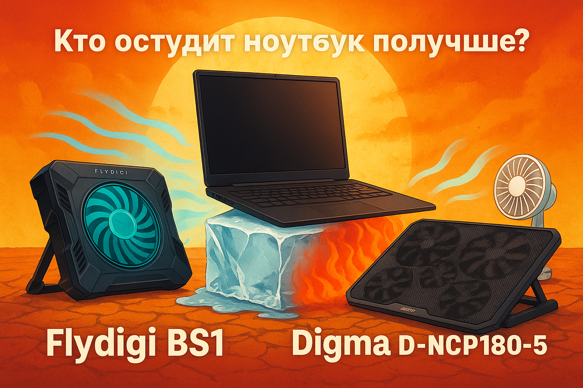 Сегодня у нас жаркий обзор — в прямом смысле. На сравнении две популярные охлаждающие подставки для ноутбуков: компактная 5-ти вентиляторная Digma D-NCP180-5 и массивная одна-турбинная Flydigi BS1, способная, кажется, остудить даже раскалённую сковородку.