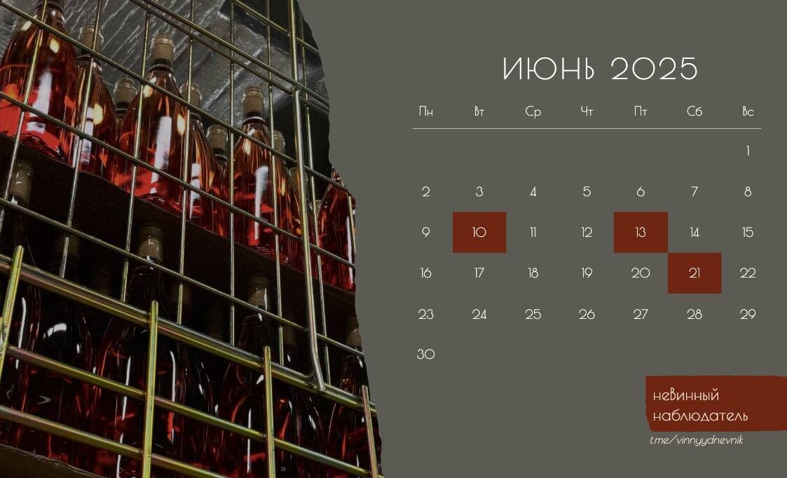 Календарь виноголика 🥂 важные даты Июня, сохраняете, чтобы ни о ком не забыть 📌 Винная общественность не может определится с одним единственным и неповторимым днем, когда чествовать Шенен Блан. Предлагаю определить июнь, как месяц Шенена. Он этого достоин ♥️ 📌 10 июня - Всемирный день розового вина. Как же обойтись без розе летним вечером, тем более если оно с таким характером? 📌 13 июня - Всемирный день Вердехо. 📌 21 июня - Всемирный день Ламбруско. Нет это и не страшно, и не сладко, если знать что искать. #винныйкалендарь #июнь2025