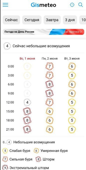 Жёсткий геомагнитный шторм почти максимального уровня накрыл города России Магнитная буря началась ночью в воскресенье, 1 июня, и значительно усилилась к полудню, следует из данных Лаборатории солнечной астрономии ИКИ и ИСЗФ РАН. «Абсолютно неожиданные и пока просто необъяснимые события происходят сейчас около Земли. К Земле, судя по показаниям сразу нескольких космических средств слежения (как минимум ACE и DSCOVR), пришло выброшенное вчера Солнцем облако плазмы», — рассказали в Лаборатории солнечной астрономии. Отмечается, что около 8:30 по московскому времени был зафиксирован исключительно сильный скачок всех параметров межпланетной среды. Скорость солнечного ветра временами была больше 1000 километров в секунду. Её плотность и температура также серьёзно превышали норму. В частности, если верить показателям спутника, температура солнечного ветра была более двух миллионов градусов при нормальном значении около 100 тысяч градусов. Показатель превышает температуру плазмы в короне Со