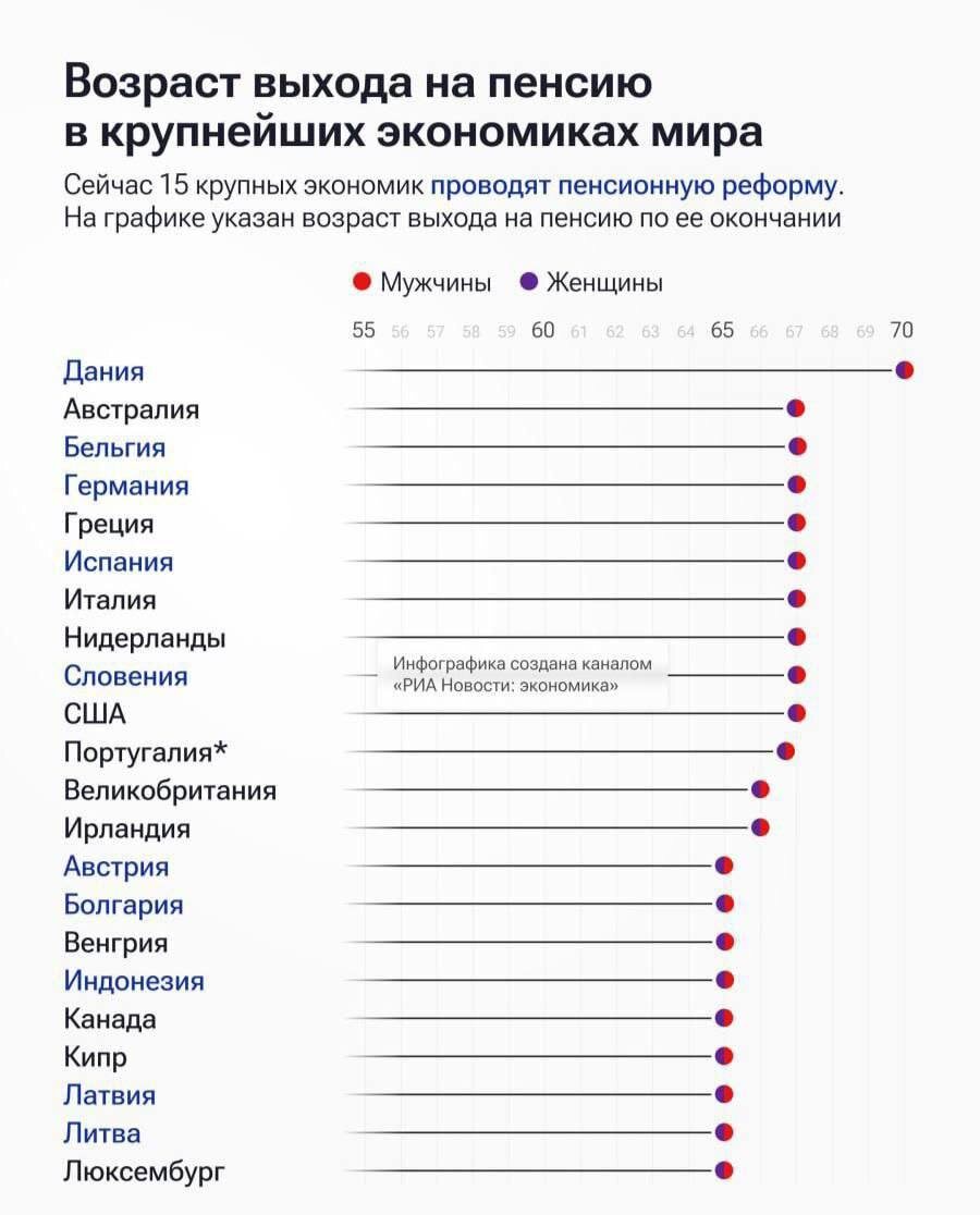 В Дании пенсионный возраст повысили до рекордных 70 лет. Это максимум среди всех остальных развитых экономик.