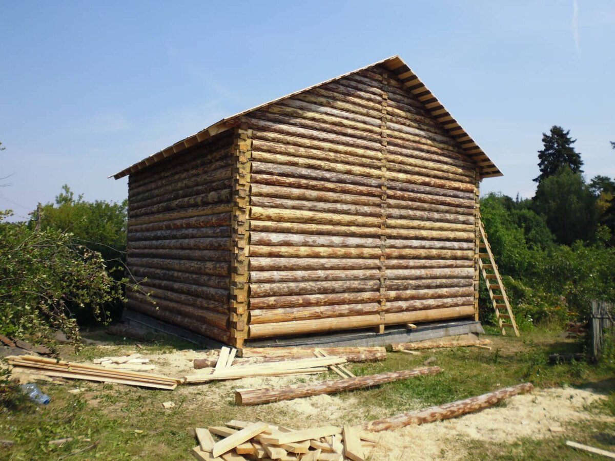 Деревянный дом 9*12 метра в лапу, в осях, с перерубом по длинной стене, рубленый в лапу. Бревно для изготовления сруба средним диаметром 250 миллиметров, порода дерева ель, сосна. Обработка бревен для изготовления сруба бревенчатого, первичная то есть окорка(снятие коры с бревна), лес зимней заготовки из Вологодской области. При изготовлении рубленных домов, по технологии рубка в лапу, расходуется меньше брёвен для рубки колодца, значит соответственно и стоимость сруба в лапу, на 1/5 меньше, чем сруба дома бревенчатого аналогичного размера, но сделанного по технике рубка в чашу. Деревянный дом 9*12 метра в лапу, изготовлен с одним перерубом, разделяющий строение пополам, пятая стена капитальная. Высота вырубки строения дома, составляет не менее семи метров до конька. Устройство стропильной системы производиться на несущие стены сруба по длинной стене( 12-метровой). Для изготовления стропил, применяется доска обрезная сечением 150*50 мм. Устройство стропильной системы под утепление,