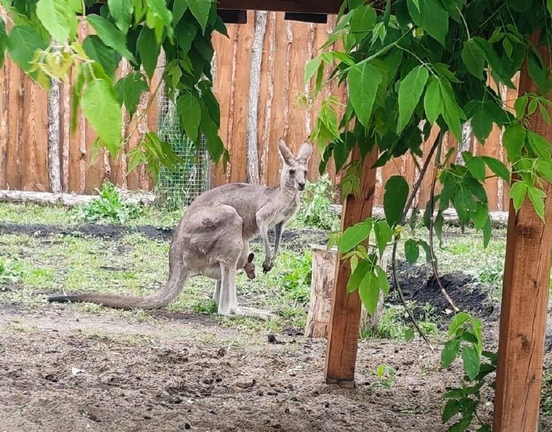 Ко Дню защиты детей пара серых кенгуру сделали зоопарку настоящий подарок и показали посетителям своего детёныша.