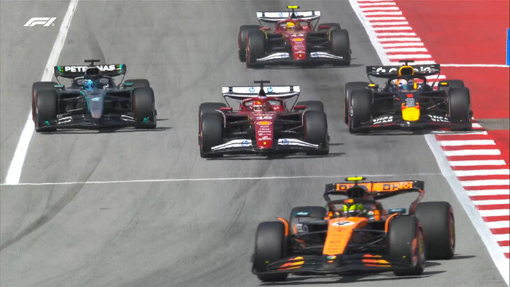 ● Пиастри выдал мегастарт, а Норрис отдал позицию Ферстаппену – Макс вылетел из слипстрима «Макларена» и объехал Ландо. А Хэмилтон и Леклер опередили Расселла и Антонелли – Леклер чуть не вытолкнул Кими с трека, итальянец едва успел увернуться. Лучший рывок же выдал Хюлькенберг – +4 позиций.