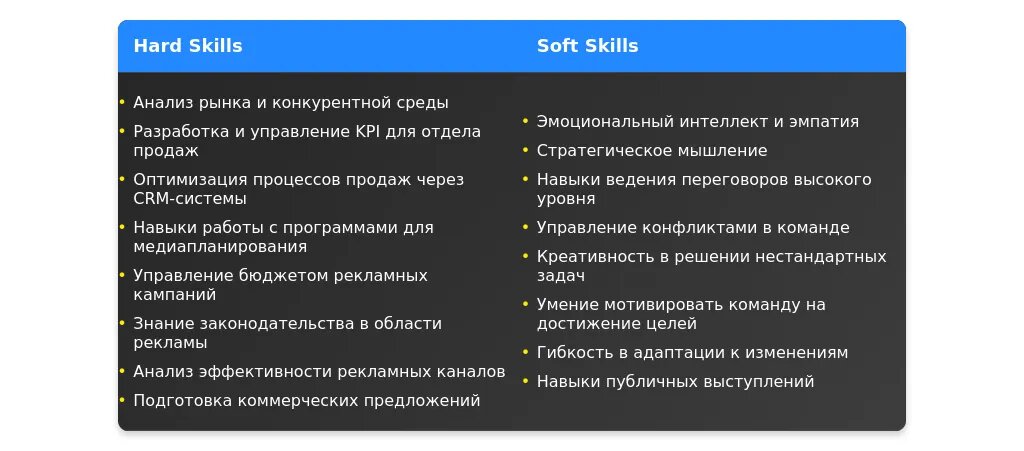 Анализ требований вакансии для профессии "руководитель отдела продаж рекламы"