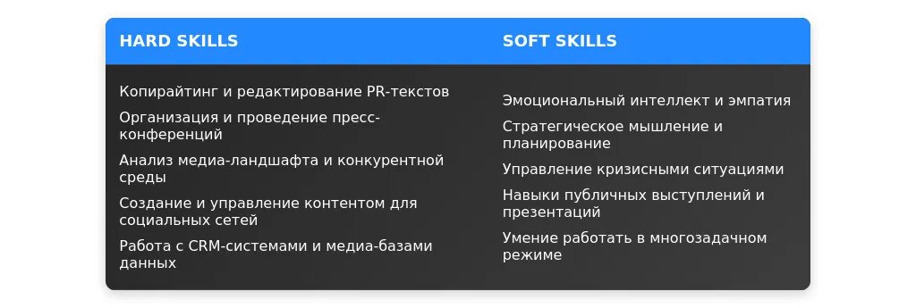После: "SMM, медиапланирование, кризисные коммуникации, работа с прессой."