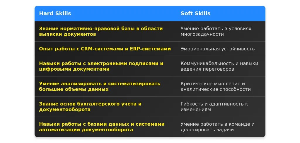 Пример 3: "Ведение отчетности и контроль документооборота". Обязательное требование — знание документооборота. Скрытое требование — внимание к деталям.