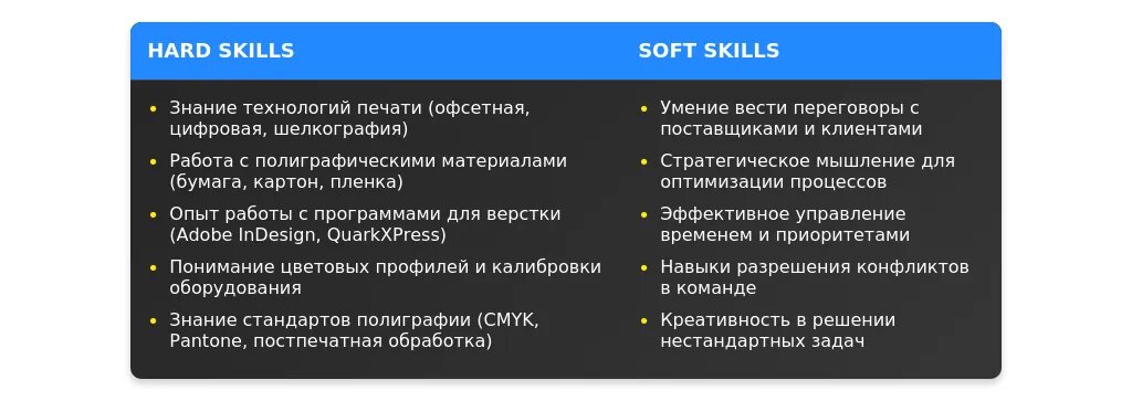 Обязательные технические навыки для менеджера по полиграфии включают: