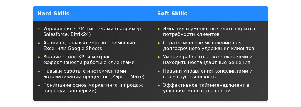 После адаптации: "Опыт работы с CRM-системами (Salesforce, Bitrix24), навыки ведения переговоров, высокая стрессоустойчивость."