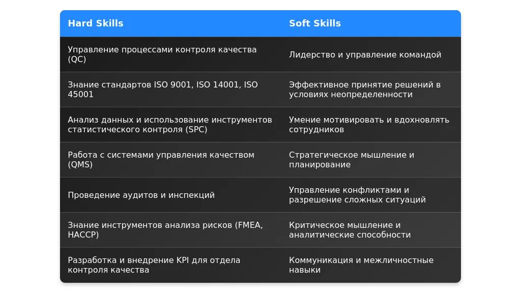 После: "Опыт внедрения систем контроля качества, знание специфического ПО для автоматизации процессов."
