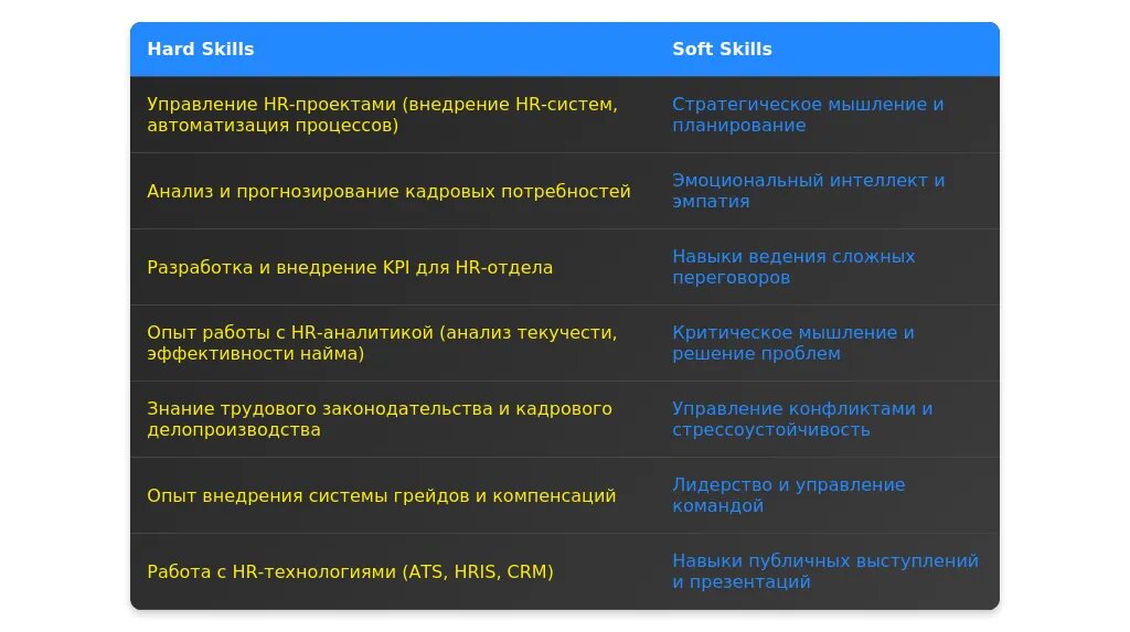 До адаптации: "Знание трудового законодательства и опыт работы с кадровыми системами."