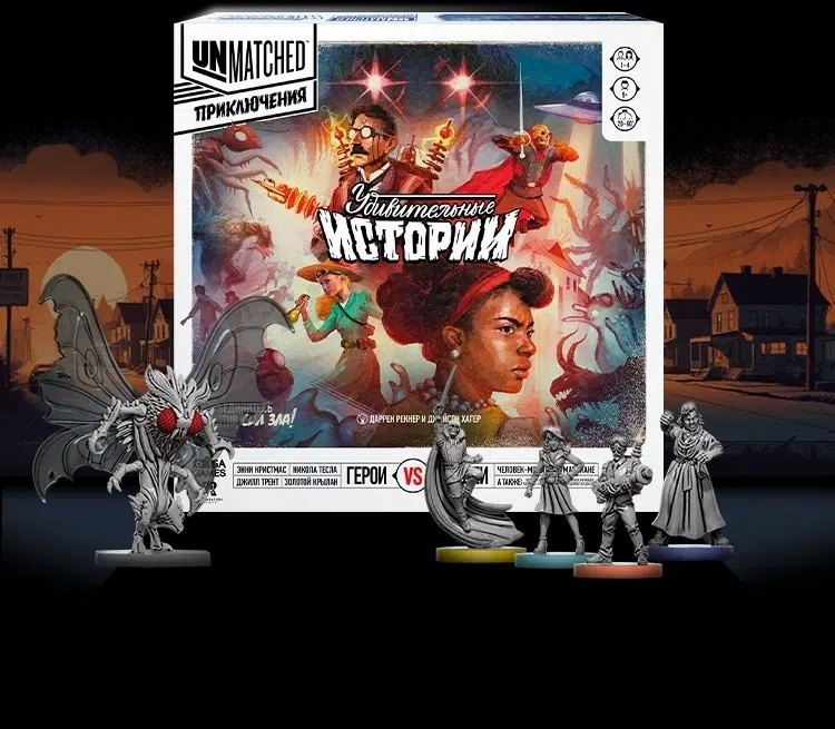 Настольная игра Unmatched: Удивительные истории предлагает игрокам объединиться против сил тьмы в захватывающем кооперативном режиме. Вас ждут легендарные монстры из фантастики и городских легенд XX века, такие как загадочный Человек-мотылёк и коварные Марсиане. Готовьтесь к битве, где только слаженная командная работа приведёт к победе! Особенности игры Как играть? Особые механики Советы для новичков Заключение
