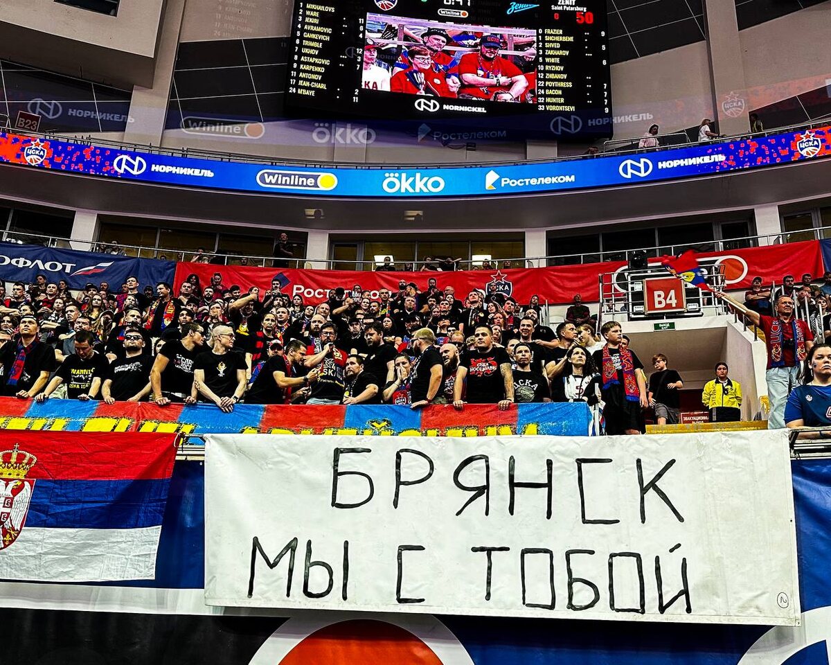 💪 Болельщики ЦСКА вывесили баннер с поддержкой жертв ЧП в Брянской области