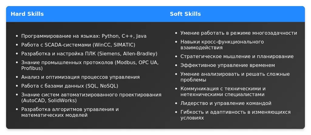 При анализе вакансии важно выделить ключевые требования, которые работодатель считает обязательными. Это могут быть технические навыки (например, знание SCADA-систем, программирование на Python или C++), опыт работы с определенными технологиями (например, промышленная автоматизация) или сертификаты (например, ISA или PMP). Обращайте внимание на формулировки: если требование указано в начале описания и выделено жирным шрифтом, это, скорее всего, обязательное условие. Желательные требования часто описываются как "будет плюсом" или "желательно знание".