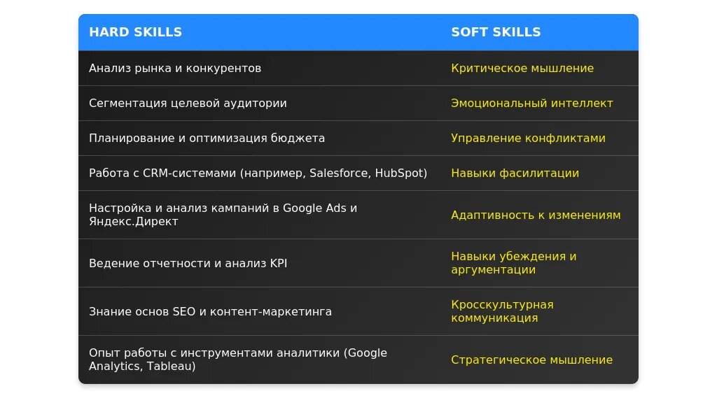 - Делайте акцент на базовых навыках, таких как работа с Excel, Google Analytics, основы SMM.