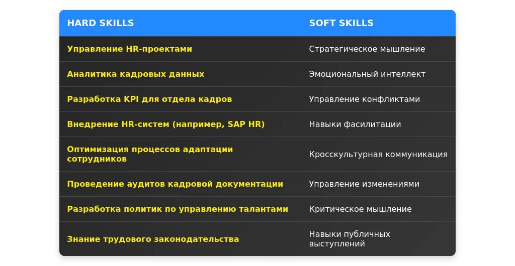 - Акцент на базовые навыки: кадровое делопроизводство, знание трудового законодательства.