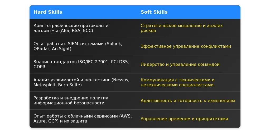После адаптации: "SIEM-системы (Splunk, QRadar), ISO 27001, GDPR, управление проектами."