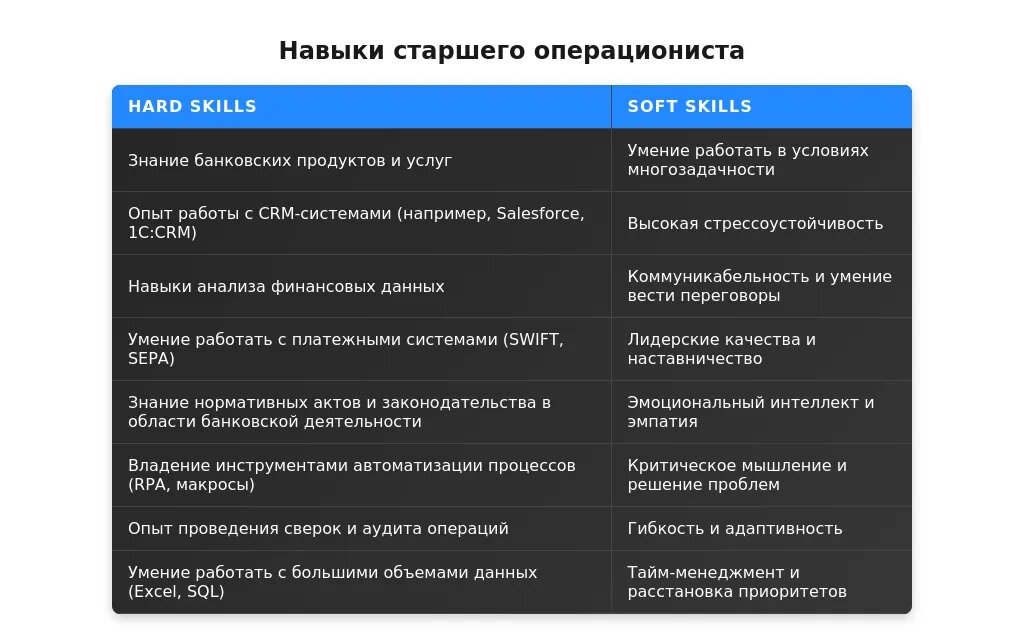 Анализ требований вакансии для профессии "старший операционист"