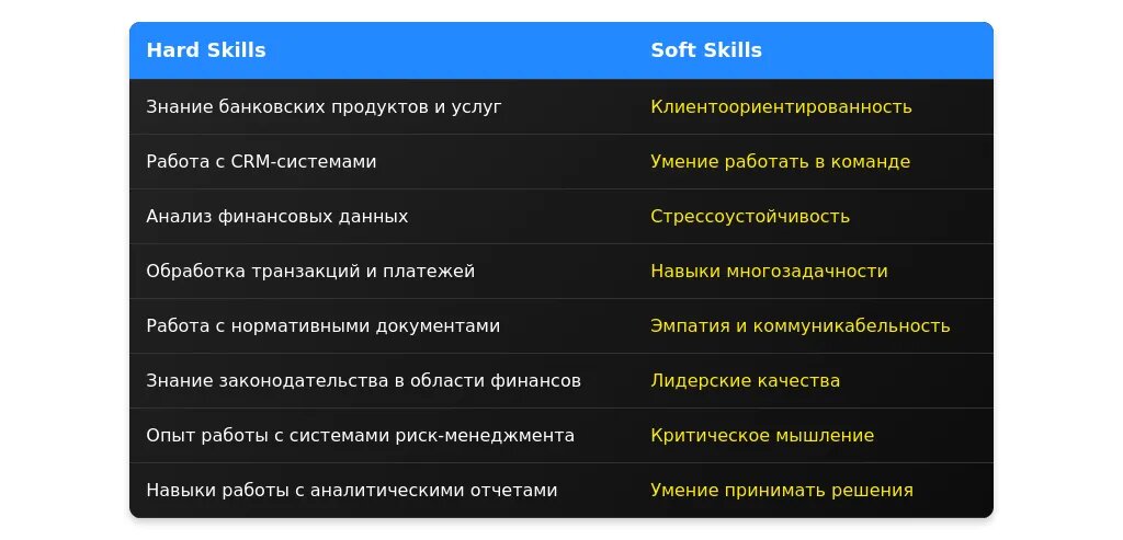 - Отразите специализацию (например, работа с корпоративными клиентами или валютными операциями).