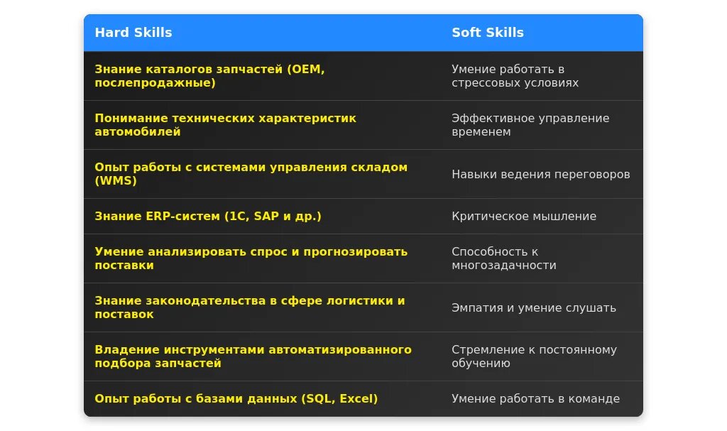 Технические навыки для менеджера по подбору запчастей