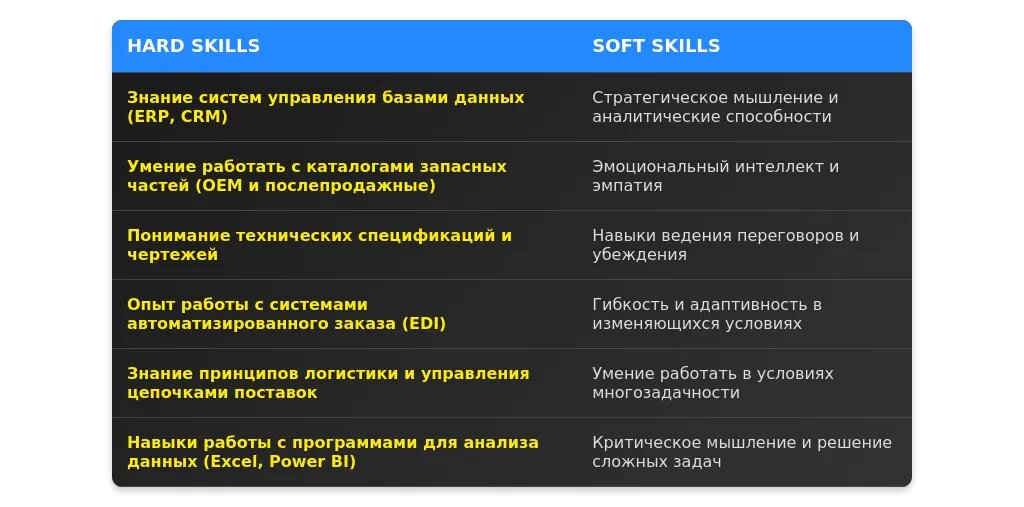 Технические навыки для менеджера по подбору запасных частей