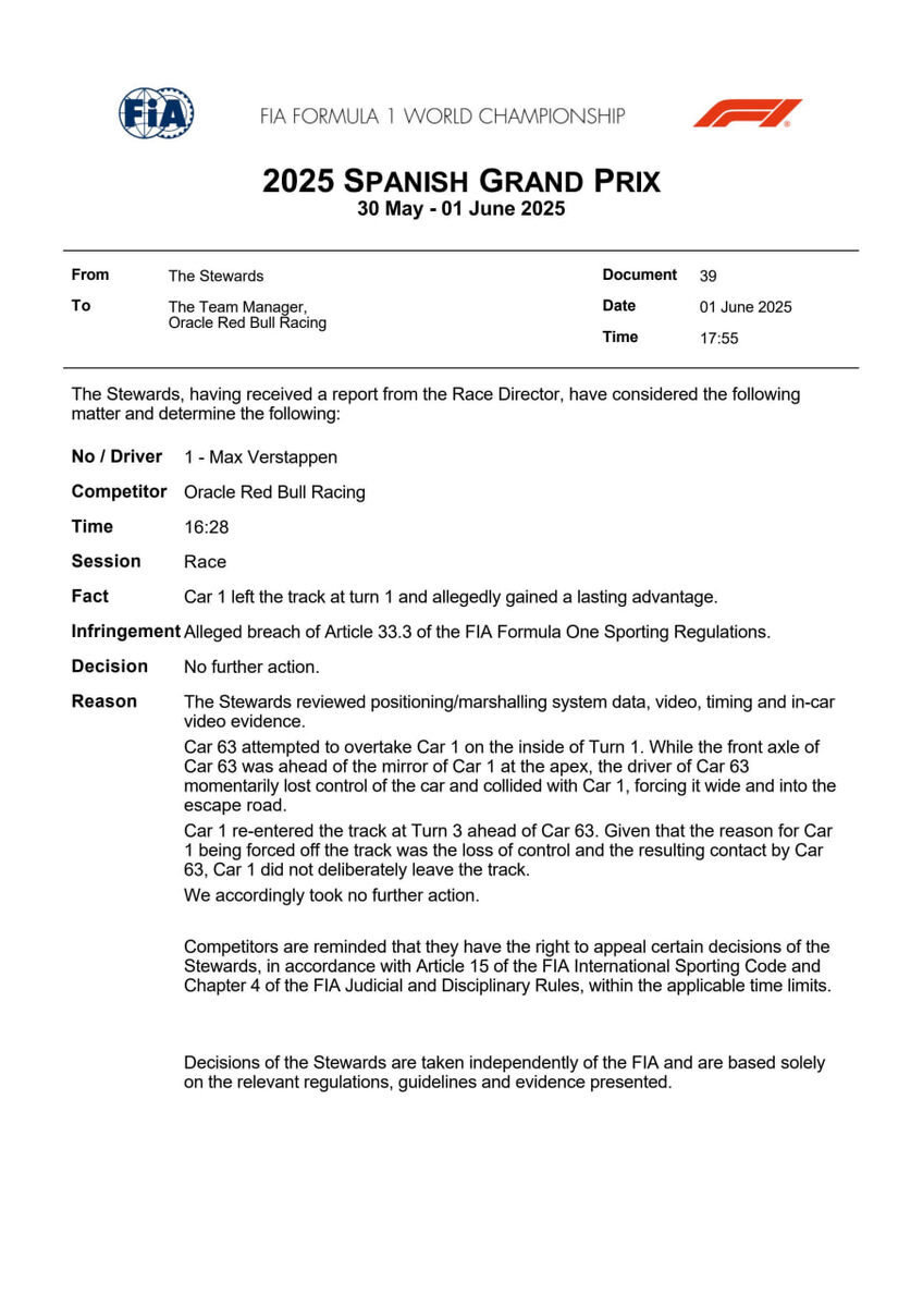 За первый контакт Ферстаппена с Расселом простили Макса: Так как Джордж при попытке обгона потерял контроль над машиной, в результате чего выбил с трассы Ферстаппена. - поэтому Макс невиновен в том, что выехал за пределы трассы и сохранил позицию. У меня один вопрос: "Что?" То-есть они расследовали исключительно то, что Ферстаппен выехал за пределы трассы, а не то, что Рассел его туда выбил, как по мне это странно. Ну и получается Макс не был обязан пропускать британца. Поспешил питвол Ред Булла с решением. Решили на конец дистанции устроить своему гонщику полные харды. А вот за нарочный контакт, когда Макс решил ответить Расселу, Ферстаппена наказали целыми 3 штрафными баллами, теперь ему не хватает всего 1 балла до дисквалификации на гонку. Ближайшие 2 сгорят 30 июня. Тем самым у него есть целый месяц, чтобы заработать еще 1 балл и получить отпуск для игры в IRacing
