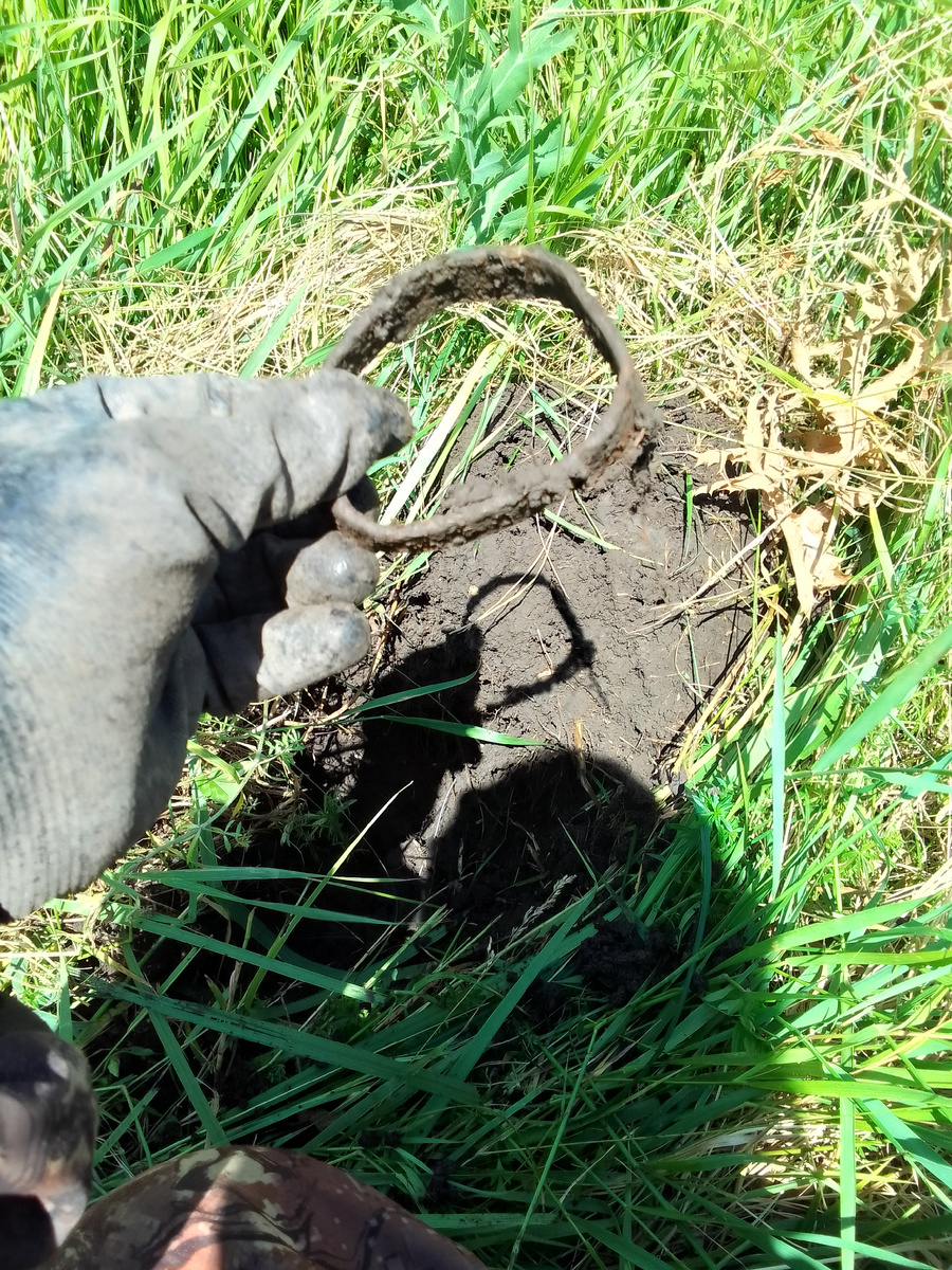 Здравствуйте! Сегодня, как и планировалось, смог выделить пару часов для копа, чтобы добить старую дорогу и переходить уже на какое-нибудь новое место. И так получилось, что сегодня я и выполнил обе этих задачи. Расскажу подробнее. День начался с утра с забот , поездок по магазинам, ведь у меня тройной праздник - День защиты детей, Первый день лета, День рождения. Вот так вот повезло. Когда уже хлопоты остались позади я прикинул и решил что могу себе позволить несколько часов развеяться и прогуляться. А раз так, то сомнений не было куда ехать - старая дорога. Немного осталось пройти для того чтобы ставить галочку на этой локации и искать следующую. Начал поиск с того места, где остановился в прошлый раз. Находки ни чем не отличались от прошлых - всё тот же мелкий металл. Аккумулятор от телефона наверное ,попался, а жаль, сигнал был такой многообещающий. .. Ну ничего, пойдёт. Дальше мелкие находки продолжали радовать. Клубок проволоки например. Это же неплохо. Аллюминий. Затем кор