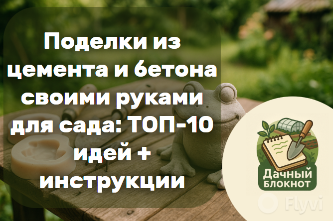 Цемент — это не только строительный материал, но и настоящая находка для дачи. Из него легко делать поделки для сада своими руками, которые служат годами и выглядят как дизайнерские. Рассказываем, как сделать фигуры и вазоны из цемента своими руками для сада, и делимся лучшими идеями, которые можно реализовать за выходные. 📌 Поделки из цемента для сада не требуют дорогих инструментов — всё можно найти на даче или в хозяйственном магазине. 1. Фигурки из цемента для сада своими руками Популярны: лягушки, совы, ежики, коты. 2. Вазоны для сада из цемента своими руками 3. Гигантский лист из бетона 4. Шаговые плиты с отпечатками 5. Грибы и пеньки 6. Пень-кашпо 7. Фонарь из цемента 8. Птичья купальня 9. Мини-альпийская горка 10. Имитация дерева или камня 💬 А вы делаете поделки из бетона для сада? Пробовали ли вы делать фигурки из цемента своими руками для сада? Какие формы использовали? Делитесь фото и советами — вместе соберём коллекцию самых красивых и удачных садовых идей! 📌 Подпишитесь
