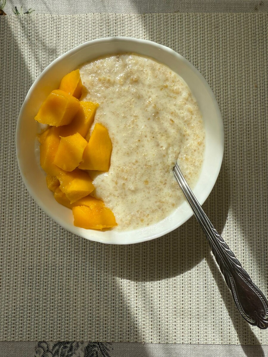 И так кратко о 6 и 7 дне челленджа . День 6 . Завтрак. У детей пшеничная молочная каша с манго . У меня чай с бутербродом с творожным сыром , авокадо и помидорами черри . На обед был суп вчерашний . На ужин кальмары в сливочном соусе с макаронами . День 7 . Завтрак У детей кукурузная полента с бананом и абрикосами Дочь на завтрак поела все и сразу ) Мой завтрак Чай , бутерброд из злакового хлеба с творожным сыром и бананом. На обед доели вчерашний суп . После обеда уехали и до самого вечера . Посему ужинали тем, что нашлось в морозилке . И это был суп из пельменей с картошкой да мороженное . Уж , не знаю, как мои дети голодными не остались ) Обычно на ужин они едят куда плотнее . Список . Из продуктов добавились : Кальмары 39(49) манго . В среду активность : Шаги 6896 + 40 мин физ-ры : пресс , верх тела , физ-ра для развития мобильности В четверг из активности только шаги : 13463 . Сразу напишу, что со среды физ-ры больше не было 😕