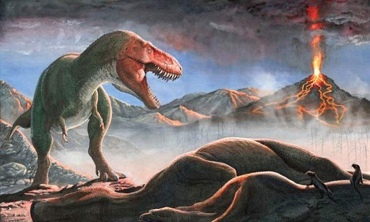 Ещё одно крупное вымирание (мел- палеоген) также характеризуется мощным лавово-трапповым вулканизмом. Но вот упавший в районе Мексиканского залива метеорит породил импактную версию вымирания (хотя далеко не все учёные согласны с тем, что найденная структура является кратером от небесного тела)