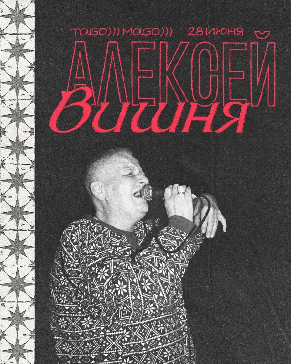 Концерт Алексея Вишни 28 июня в Tago Mago Алексей Вишня — легенда советского андерграунда. Он не только продюсер и композитор, создавший звук знаковых альбомов группы «Кино» в 80-х и работавший с ключевыми группами ленинградского рок-клуба: «Алисой», «Кофе», «Авиа», «Объектом Насмешек» и другими. Вишня - автор хитов «Расчёска», «Танцы на битом стекле», «Ты не пришла» и не только, которые звучат абсолютно свежо и модно. Алексея Вишню обожают и бумеры, и зумеры, которые совсем недавно открыли его для себя. #яместный