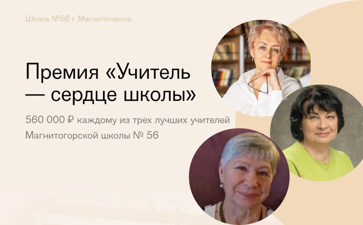 Учителя Магнитогорска получили поддержку благодарных выпускников Три педагога школы №56 стали лауреатами премии «Учитель — сердце школы» и получили по 560 000 рублей. Премию вручил выпускник этой же школы, сооснователь Рыбаков Фонда — Игорь Рыбаков. Премия учреждена в 2020 году на средства благодарных выпускников и поддерживается школьным эндаументом. Сообщество выпускников, родителей, учителей и учеников ежегодно выбирает педагогов, чей вклад особенно заметен. «Всё начинается со школы. Эндаумент — это не просто финансовая поддержка, а символ благодарности тем, кто помог сделать первый шаг. Для меня — это способ вернуть школе то, что она вложила в меня», — говорит Игорь Рыбаков. Премия помогает школе развиваться, поддерживает учеников и вдохновляет учителей на новые достижения. 🏆В 2025 году лауреатами стали: — Галина Викторовна Измайлова — Алиса Анатольевна Моисеева — Ольга Ивановна Сафронова Премиальный фонд — 1 680 000 рублей. Средства собраны за счет дохода от школьного эндау