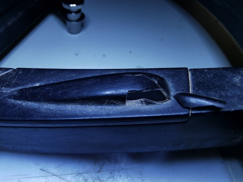 Очень повезло, не потерян кусочек. Уже будучи у меня на столе, при детальном рассмотрении, выявлено множество трещин. Видно хорошо её стукнули. Отломанная