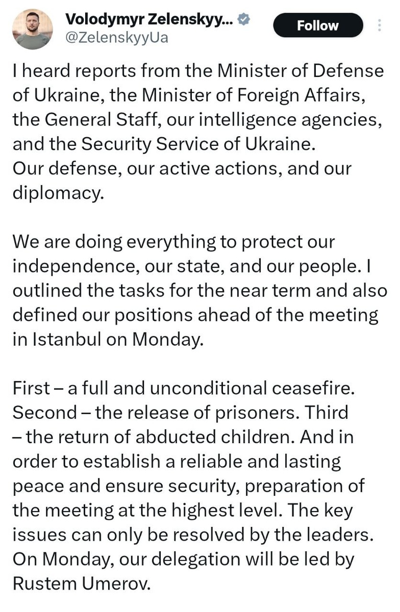 ❗️Zelensky says his team WILL be there in Istanbul on June 2
