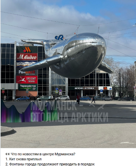 Пока я дорабатывал в Мурманске, думая, как же отчитаться вам о прошедшей экспедиции в Арктику (результаты которой оказались... Довольно сомнительными) - в ленте рекомендаций мне вдруг выскочила неслыханная новость: В самый центр Мурманска снова приплыл кит! Я, конечно, был шокирован этой новостью, подкреплённой фотографией: мало того, что кит приплыл на главную площадь - так ведь он делает это уже не в первый раз! Нужно было срочно выехать и посмотреть на это невероятное событие И, пользуясь 24-часовым перерывом между вахтами, я выехал на разведку - тем более, что надо ведь было ещё и прощупать почву к готовящемуся "Дню Кита", который будет проведён 13 июня в Мурманске и 15-го - в Териберке Ещё перед выходом в экспедицию в феврале, тусуясь в Мурманске около месяца, подготавливая документы и проходя медкомиссию, я отметил, насколько неравнодушны тут к прекрасным и величественным морским исполинам В сувенирах, на улицах, на афишах и вывесках - красовались замечательные киты. И хоть я вс