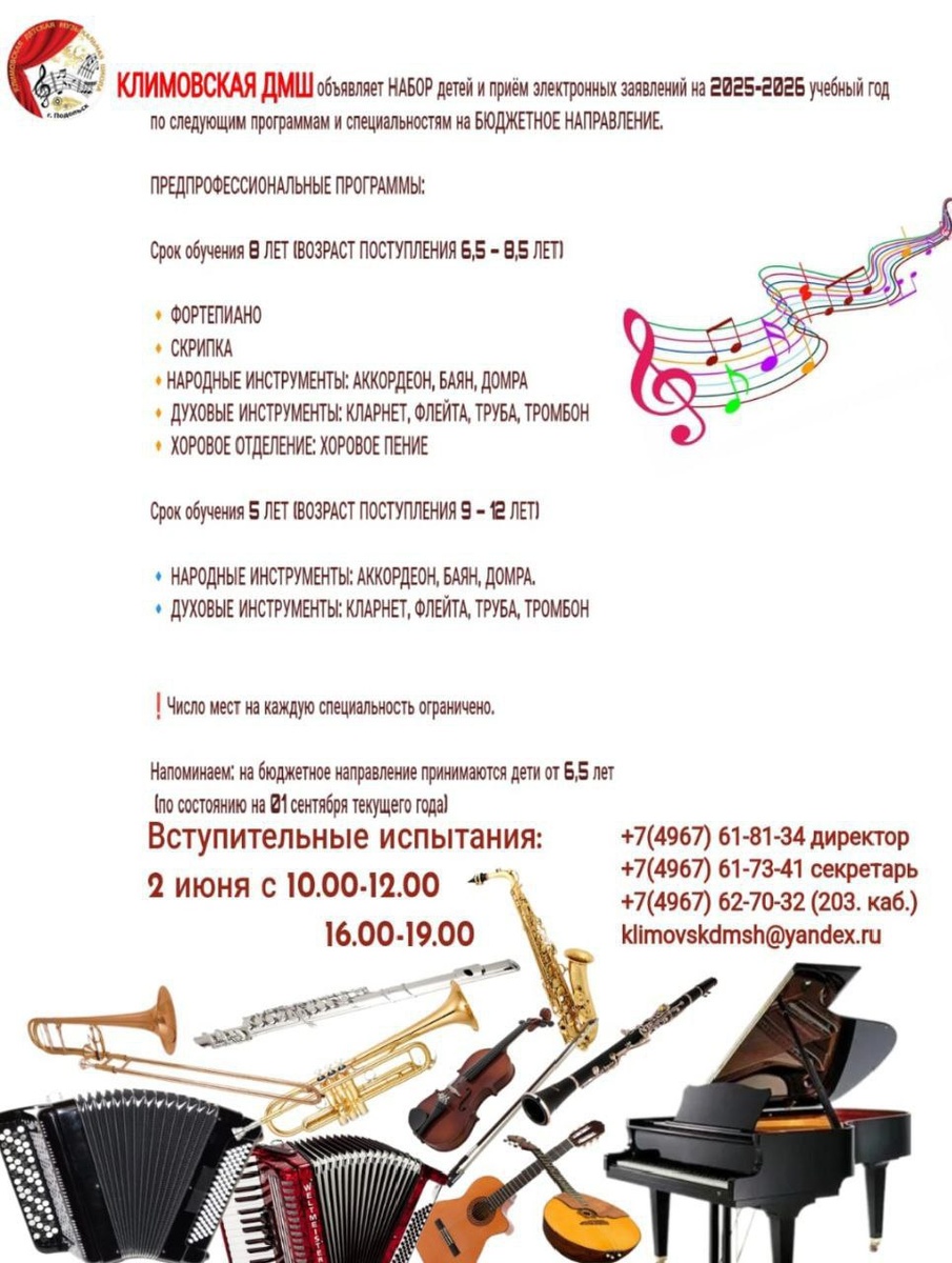 ✨ Музыкальная школа в Климовске объявляет набор на 2025/2026