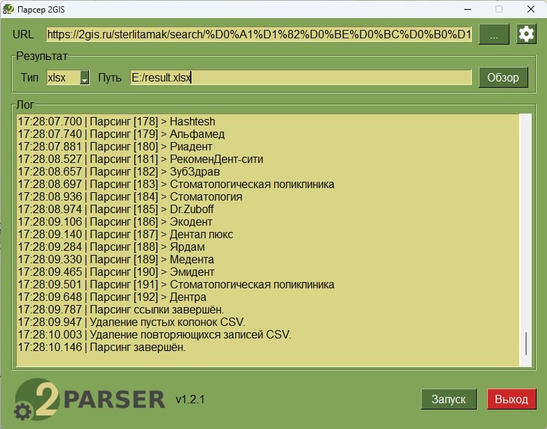 Парсер 2ГИС Нашел софт на Github, с помощью которого можно парсить данные об организациях в 2ГИС. Ради эксперимента спарсил стоматологии своего города — работает. Работает через автоматизацию действий в Google Chrome. Открывает браузер и перелистывает все странички, собирая оттуда названия, адреса, телефоны, ссылки и т.д. Для промышленного парсинга не подойдет, но периодически поюзать можно, тем более, там есть графический пользовательский интерфейс под MacOS, Windows и Linux.