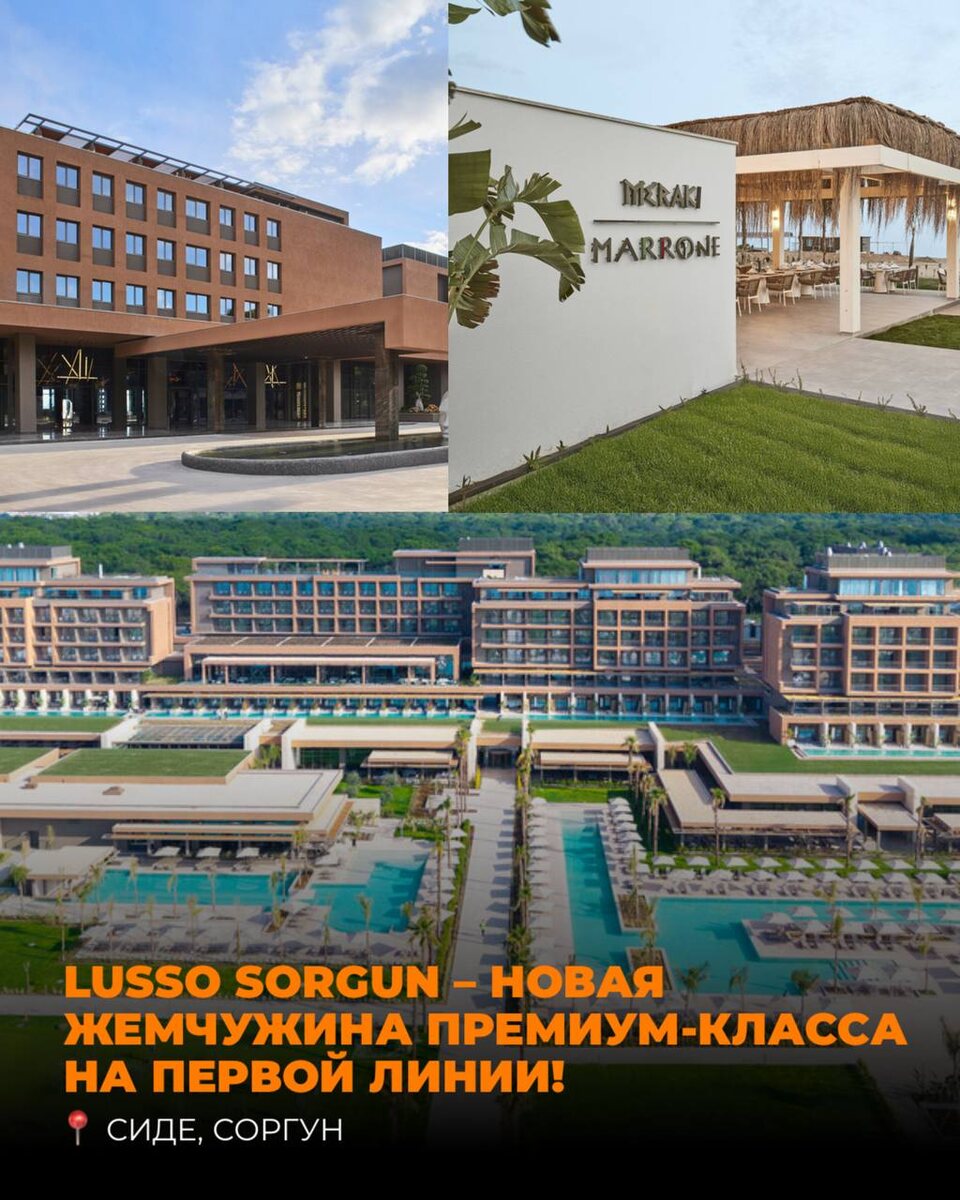 Lusso Sorgun 5* – новая жемчужина премиум-класса на первой линии! 🌴 Сиде, Соргун На месте легендарного Club Pacific открылся абсолютно новый отель от создателей Royal Atlantis, обещающий роскошь и комфорт. Основные особенности: 🏨 ~300 просторных номеров в современном 5-этажном здании ✨ Стандарты: 46 м² – для вашего комфорта 👨👩👧👦 Семейные номера: до 57 м² – идеальный выбор для отдыха с семьей 🎨 Уютный, светлый дизайн, в котором каждая деталь продумана до мелочей 🌊 Широкий песчаный пляж – всего в нескольких шагах 🏄♂️ Аквапарк для детей и взрослых 🏊♀️ Несколько бассейнов для вашего удовольствия 🍴 Питание Ultra All Inclusive: 🍽️ Изысканные рестораны и бары 🐟 Особенно хвалят блюда из морепродуктов, большое разнообразие фруктов и свежих закусок Lusso Sorgun – это ваш выбор, если вы цените стиль, простор и новые впечатления. 💫 📍 Планируйте идеальный отдых уже сейчас!