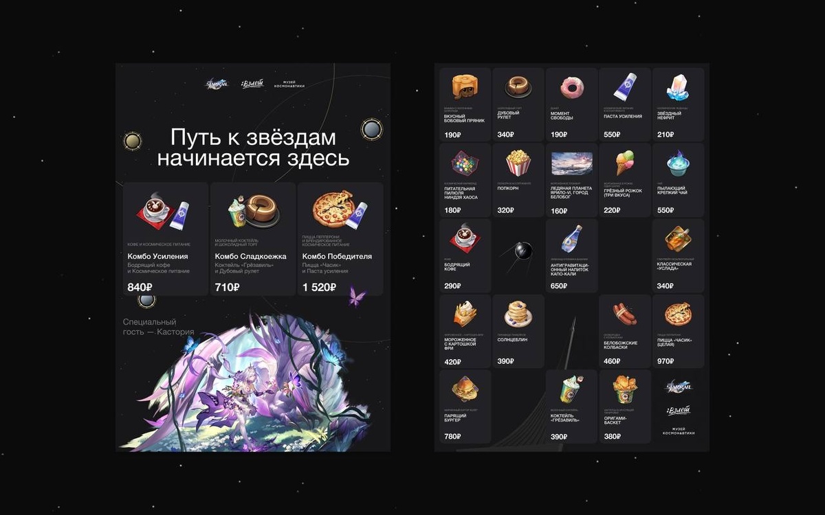 Завершился оффлайн-квест Музея Космонавтики на ВДНХ и игры Honkai: Star Rail, который прошли несколько тысяч игроков. Для этой коллаборации команда разработала дизайн сайта, фирменный стиль, мерч, 3D-графику, анимации для фасада, оформление для кафе и телеграм-бот с квестом. Если ты хочешь научиться также, а то и лучше разрабатывать дизайн, переходи по ссылке и начинай учиться бесплатно
