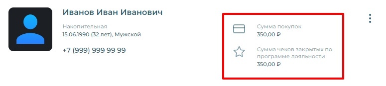 В Data-CRM мы собираем не только сумму чеков закрытых клиентом по программе лояльности (с предъявлением дисконтной карты), но и такой сумму покупок.