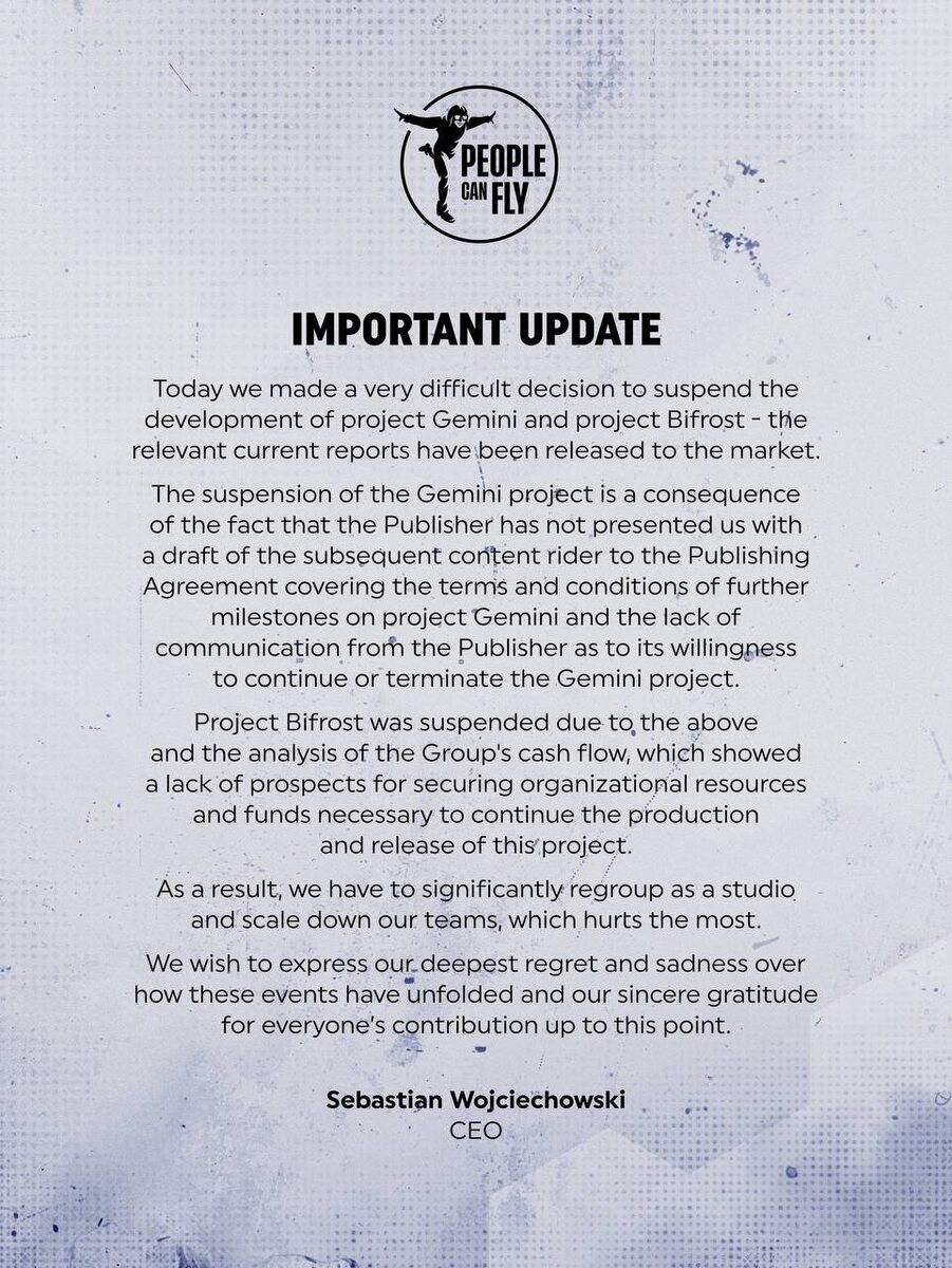 People Can Fly отменила разработку двух игр — проектов под рабочими названиями Gemini и Bitrost