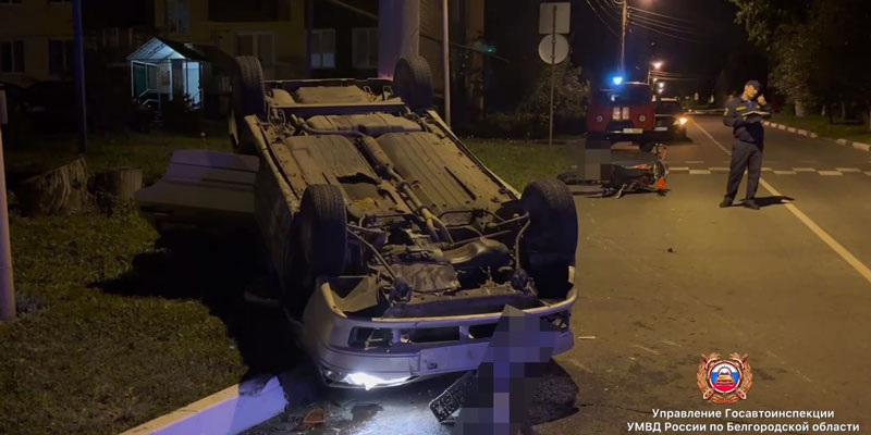 В Короче автомобиль перевернулся, столкнувшись с мотоциклом. Ранено три человека