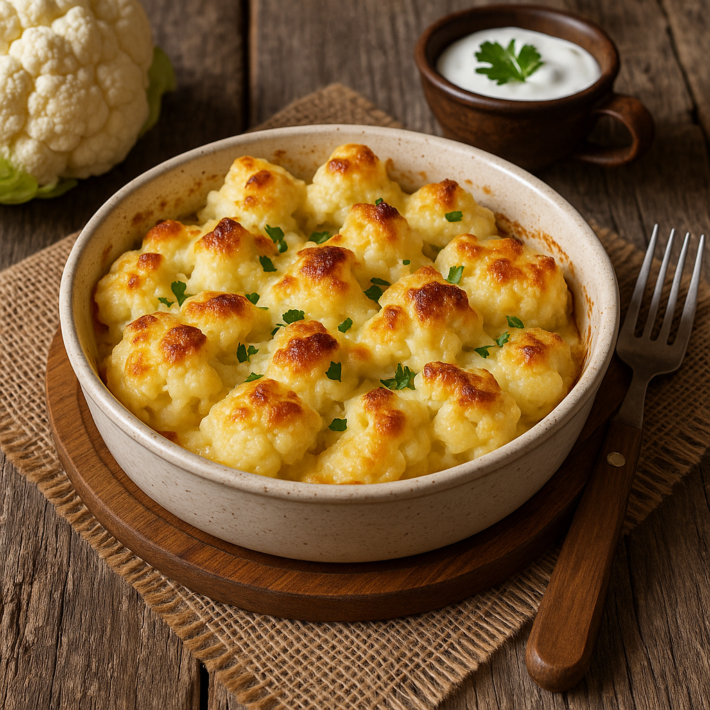 Есть в русской деревенской кухне особая прелесть — простые продукты, минимум суеты и максимум вкуса. Одно из таких блюд — запечённая цветная капуста со сметаной. Сытная, ароматная, с румяной корочкой и нежной текстурой внутри — она прекрасно подойдёт и для семейного ужина, и как гарнир к мясу, и как самостоятельное блюдо на обед. Это блюдо можно отнести к категории «уютной еды». Такой, что пахнет детством, бабушкиной печкой и неторопливыми разговорами за деревянным столом. Ни капли изыска — и в этом её главное достоинство. Разберите кочан на небольшие соцветия. Промойте их и отварите в подсоленной воде 5–7 минут после закипания. Капуста должна слегка размягчиться, но не развариться. Слейте воду и дайте стечь лишней влаге. В отдельной миске смешайте сметану, яйцо, соль, перец и измельчённый чеснок. Всё хорошо взбейте венчиком. Если хотите более выраженный вкус, можно добавить щепотку мускатного ореха или немного горчицы. Форму для запекания смажьте сливочным маслом. Выложите отваренны