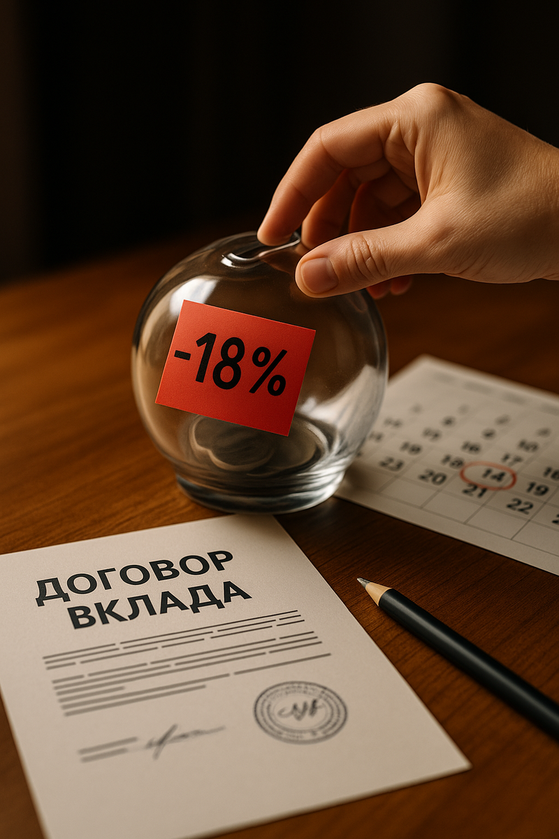 Банк расторгает договор досрочно и пересчитывает весь период почти под 0 % (обычно 0,01%). Как избежать Если проценты капают на тот же счёт, который потом закрывается досрочно, банк их тоже пересчитает. Решение С 2021 г. проценты выше лимита (1 млн ₽ × ключевая ставка) облагаются 13 %. Закрыв вклад в ноябре, получите «все» проценты одним днём — налог в следующем году растёт. Решение Вклад под 20 % может автоматом продлиться на 12 месяцев уже под 10 %. Решение У промо-вкладов штрафы бывают жёстче: не 0,01 %, а возврат всех выплаченных процентов. Решение 1️⃣ Снимайте только нужную часть или держите запасной «маленький» вклад.