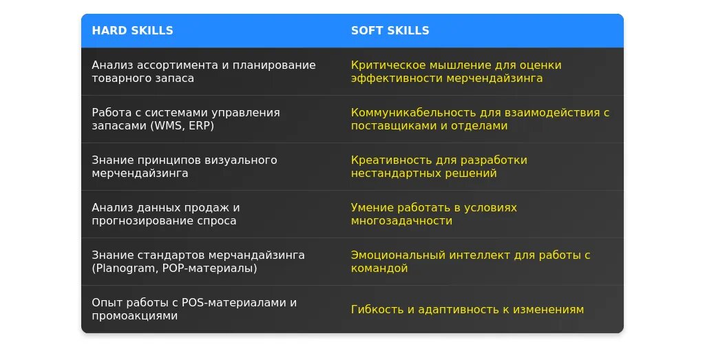 Пример 5: "Знание основ визуального мерчендайзинга и опыт работы с планограммами". Это ключевое требование для профессии.