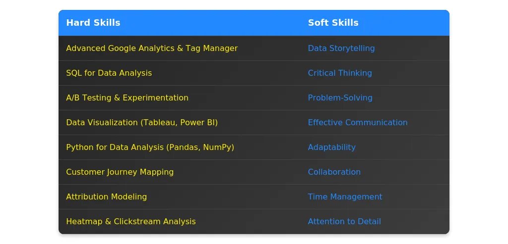 - Акцент на навыках: Базовые технические навыки (Excel, Google Analytics) и soft skills (обучаемость, коммуникация).