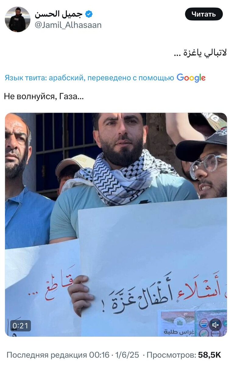 🇸🇾 Пока Джуляни целует руки и вылизывает обувь Трампу, мечтая о сближении с Израилем, одна из его главных инфопатаскух буквально забила свою ленту словами поддержки в адрес сектора Газа.