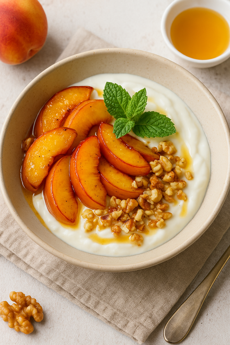 ✨ Идеально для теплого утра, когда хочется чего-то легкого, полезного и вкусного! #завтрак #летнийзавтрак #рецептизавтрака #полезныйзавтрак #персики #йогурт #орехи #рецептыиюнь #быстрыйзавтрак #рецептынакаждыйдень #готовимдома #кухня