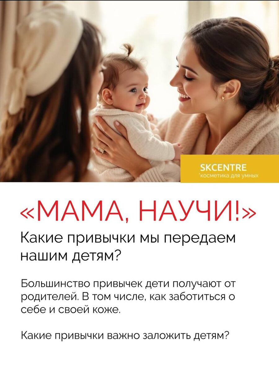 🔹 А помнишь, как ты открыв рот смотрела на то, как мама мажется всякими кремами и хлопает себя ладошками по лицу? 🔹 А как ты красила губы маминой помадой, а она ругалась, потому что помада, оказывается, была жутко дорогая? 🔹 А свой первый лосьон от прыщей? Да, это был папин одеколон, огуречный, кажется )) Сегодня весь мир напоминает: дети — наша самая большая ценность. Мы заботимся о них с первых дней жизни — учим ходить, говорить, выбирать друзей... и ухаживать за собой. И важно не только рассказывать детям, как это важно. Лучше и эффективнее - показывать на собственном примере. Заботиться о себе, заниматься спортом, гулять, отдыхать, достаточно спать, ухаживать за кожей — мы передаем детям не просто привычки, а ценности на всю жизнь. Именно поэтому я так много говорю об уходе за кожей и предлагаю женщинам безопасную, эффективную и полезную косметику, которая гарантированно работает. ☀️ Впереди лето — сезон опасного солнца, прогулок и отдыха. Позаботьтесь о том, чтобы оно пр
